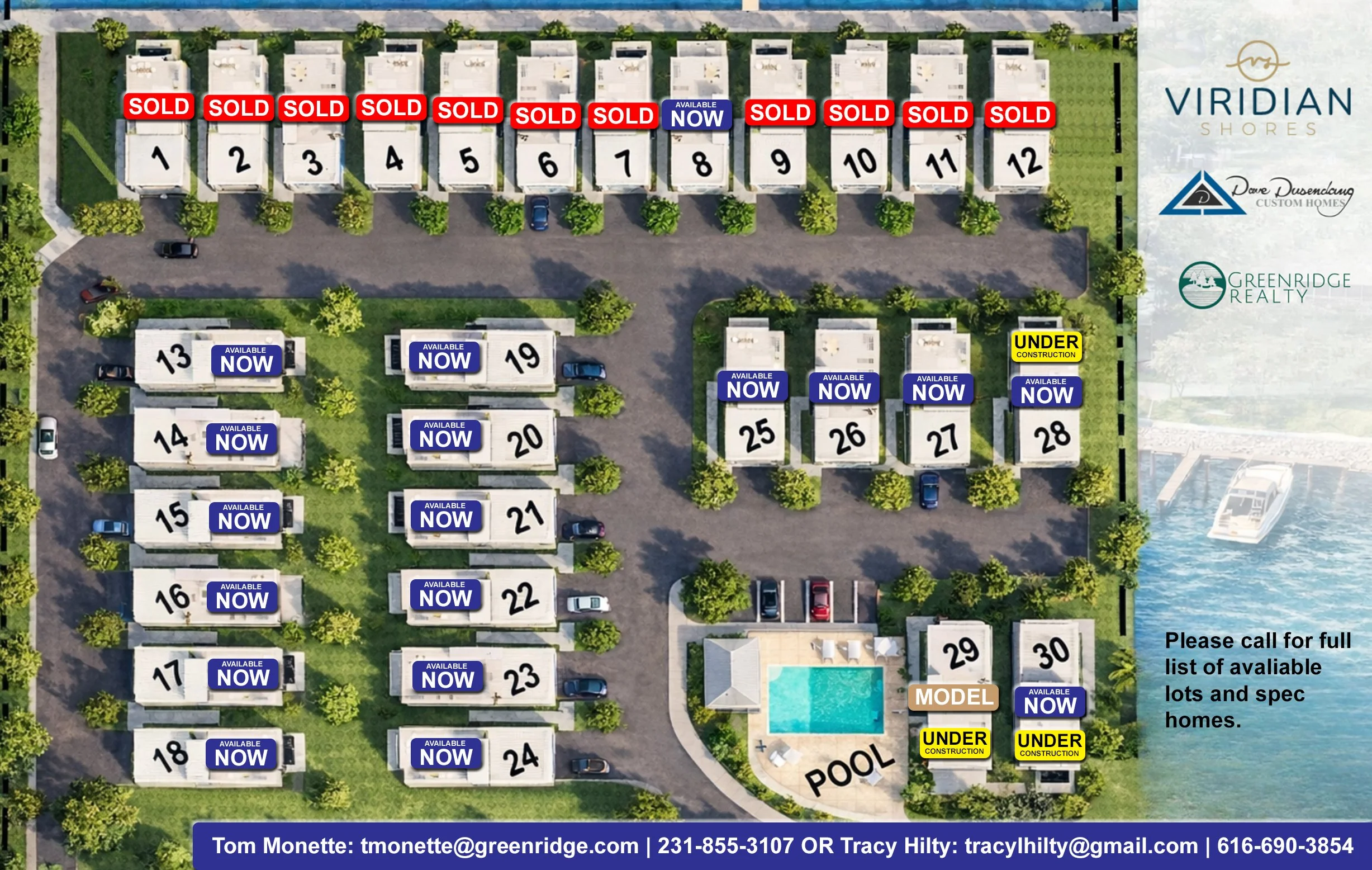 The development features a modern, contemporary aesthetic highlighted attached garages, and thoughtfully designed architecture. Its efficient, intentional layout fosters a close-knit community atmosphere for residents of Viridian Shores. Exclusive amenities such as access to the community pool and the ability to purchase your own 60 ft. boat dock with water and electricity, while they are available.